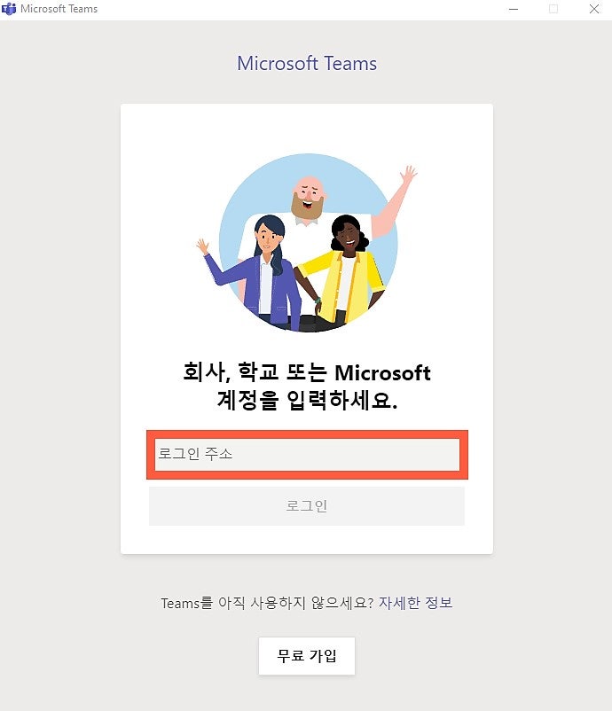 설치가 완료되면 Teams가 자동으로 실행됩니다. 이후 Microsoft 계정으로 로그인해 주세요.