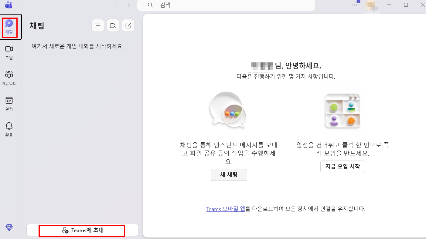 회사에서 사용하는 Teams의 경우 대부분 조직 계정으로 운영되며, 개인 계정과 회사 계정은 환경이 다를 수 있습니다.
