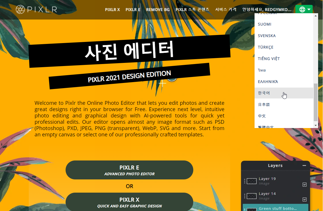 우선 PIXLR E 로 먼저 들어가 설명해보도록 하겠습니다. PIXLR X는 기능이 너무 단순해서 E로 설명드리기 더 편한 거 같아서입니다.