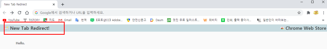 검색창에 new tab redirect라고 치면 확장 프로그램이 하나 나오는데 이름을 보니까 크롬 브라우저에서 다른 곳으로 사이트를 이동시키는 프로그램인 거란 생각이 들었고 마지막 실행시켜보니 내 생각이 맞았다.
