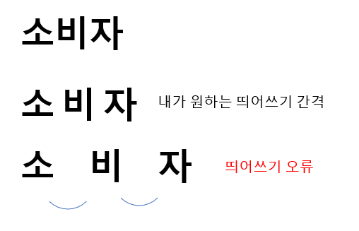 전자로 되어있으면 띄어쓰기가 넓어집니다.